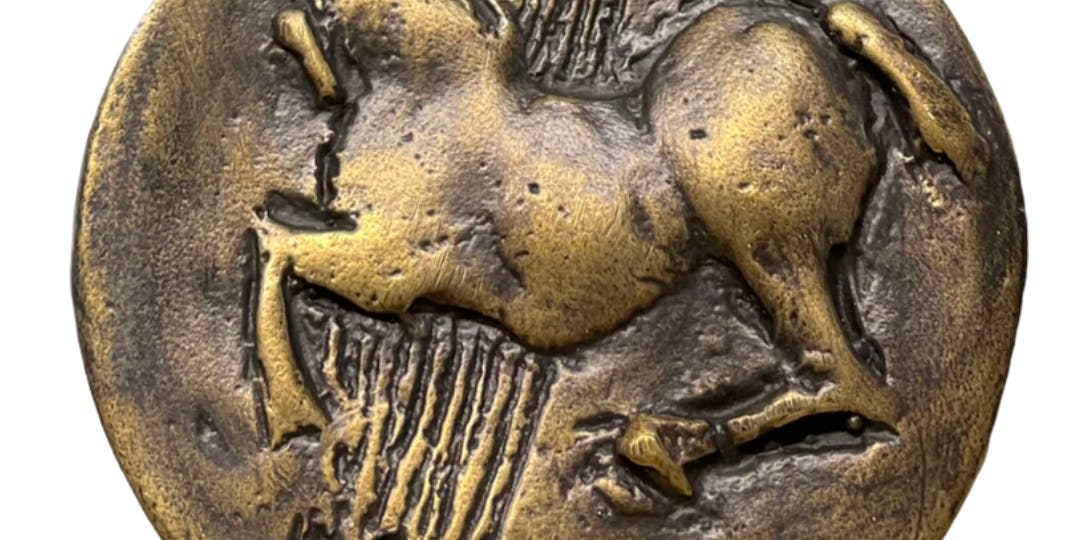 So it was with great pleasure and enthusiasm that I accepted the Fondazione’s proposal to create a medal to celebrate these fifty years of its history. I immediately decided to propose an image which could express the points of union between our separate arts, mine and that of the Fondazione: a horse dancing on silken warp threads tensioned on an ancient loom.