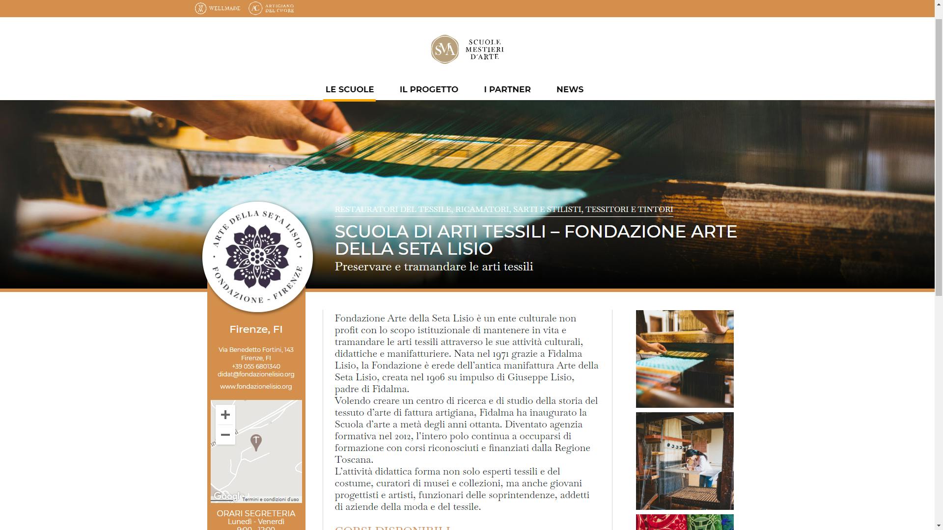 L’offerta formativa è ricca e destinata a crescere: Scuole di Alta Formazione, Accademie, Centri di Formazione Professionale e Istituti Tecnici Superiori; ogni istituto ha una pagina dedicata con i contatti e l’elenco dei corsi, mentre la navigazione per filtri consente di cercare le scuole d’interesse per tipologia, mestiere e regione.