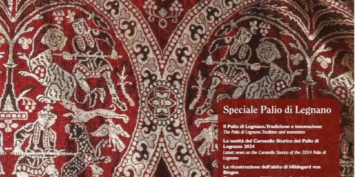 This issue is entirely dedicated to the Palio di Legnano with which the Fondazione Lisio has had close ties since 2019. Since May 29, 1876, a Carosello Storico (Historical Pageant) has been held, inspiring the Legnano community to undertake scientific research into the life, costumes, and traditions of the 12th century in pursuit of historical accuracy. In addition to showcasing the various activities in which the Commission is involved and organises, the second presentation features a selection of costumes designed for the 2024 Palio. Two students taking part in the internship for the two-year “Historical Tailoring, Costume for the Performing Arts” course held by the Fondazione Lisio, recreated Hildegard von Bingen’s dress for the Contrada Sant’Ambrogio.