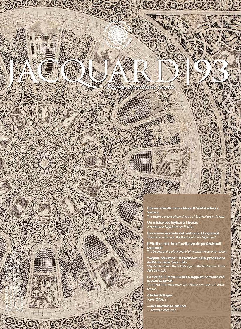 The first issue of 2024 opens with an article about the textile heritage of Sant’Andrea in Savona, a comprehensive collection of great value with important articles dating from the 17th to the 20th century. This is followed by an in-depth look into the ‘enigmatic’ fragment of a tapestry that is part of a private collection depicting Susanna surprised at her bath by the Elders, from the last decade of the 16th century. From tapestries, we switch our attention to the world of women’s vocational schools, focusing on their role in “disseminating and passing on knowledge and technical skills “, especially in the lace industry.
