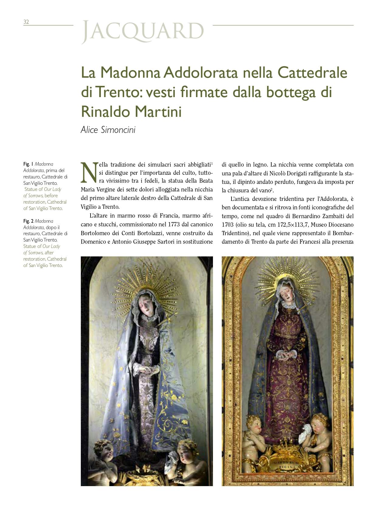 The Our Lady of Sorrows in the Cathedral of Trento: clothes made by the workshop of Rinaldo Martini