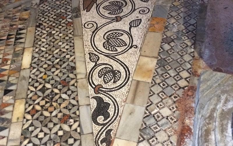 References of the complex geometric pattern, based on intersecting circular figures, are taken from a floor mosaic in one of the world’s most beautiful churches: Saint Mark’s Cathedral of Venice.