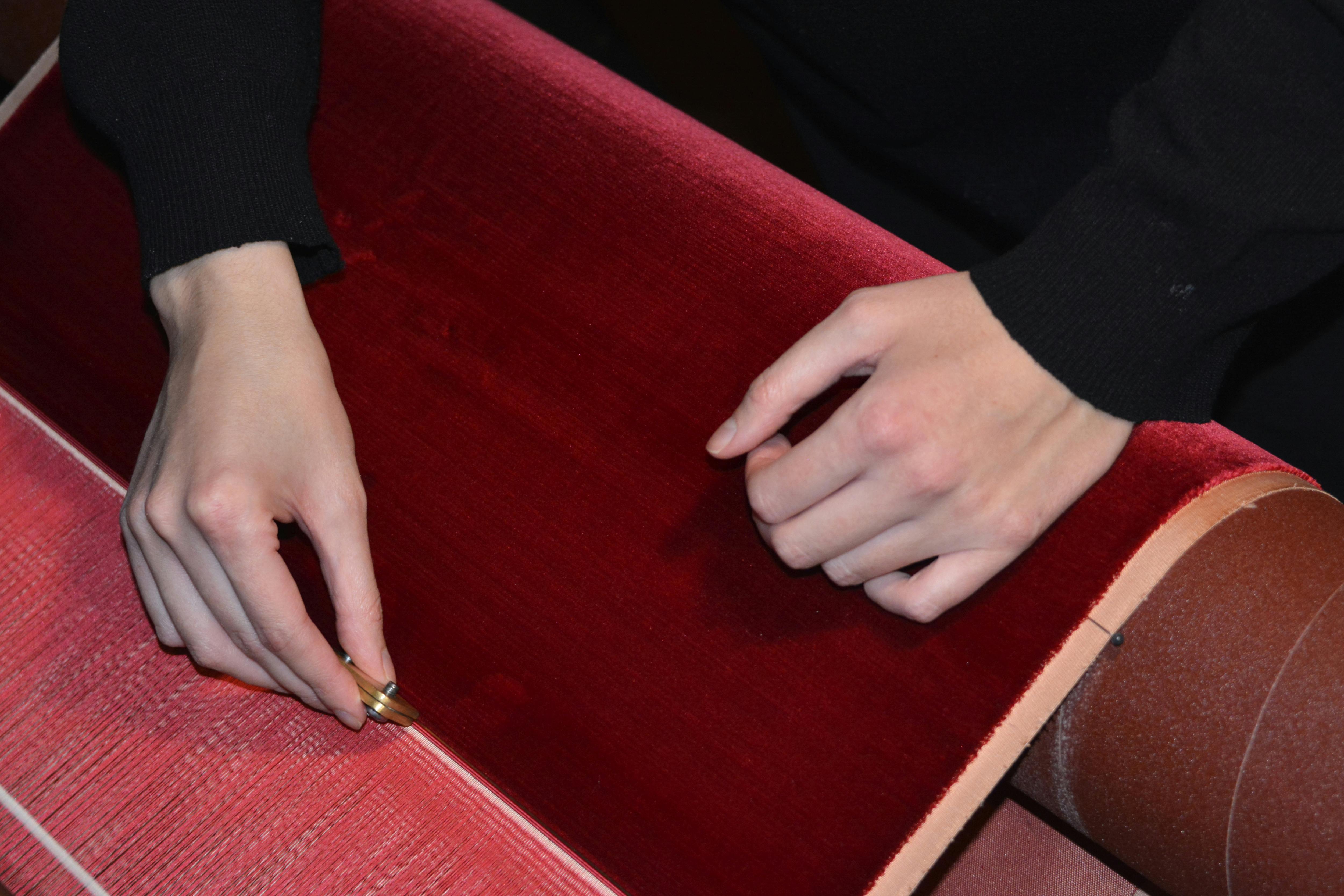 Three new hand-operated looms were prepared for the project: one for the two telette and two looms for the velvet.