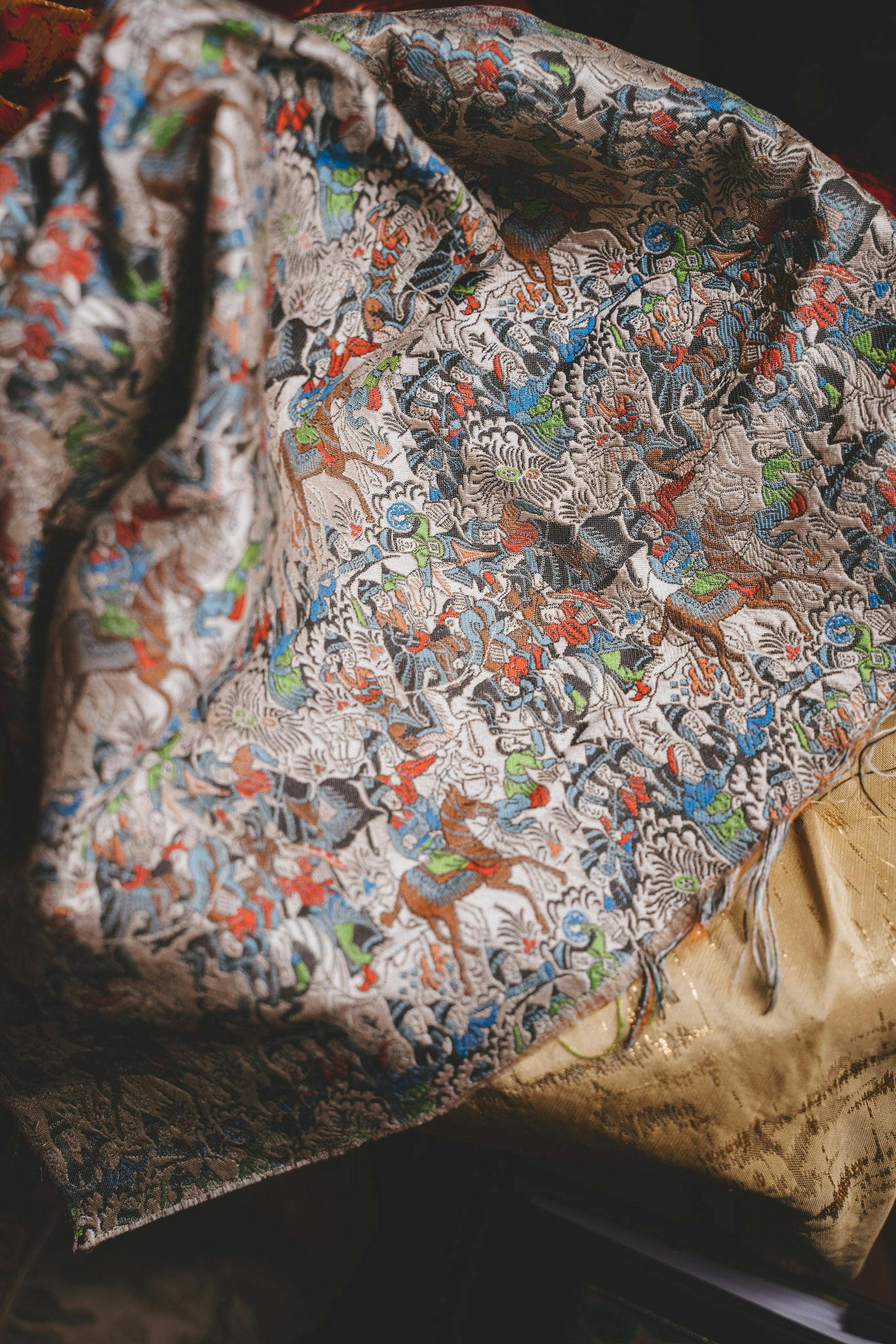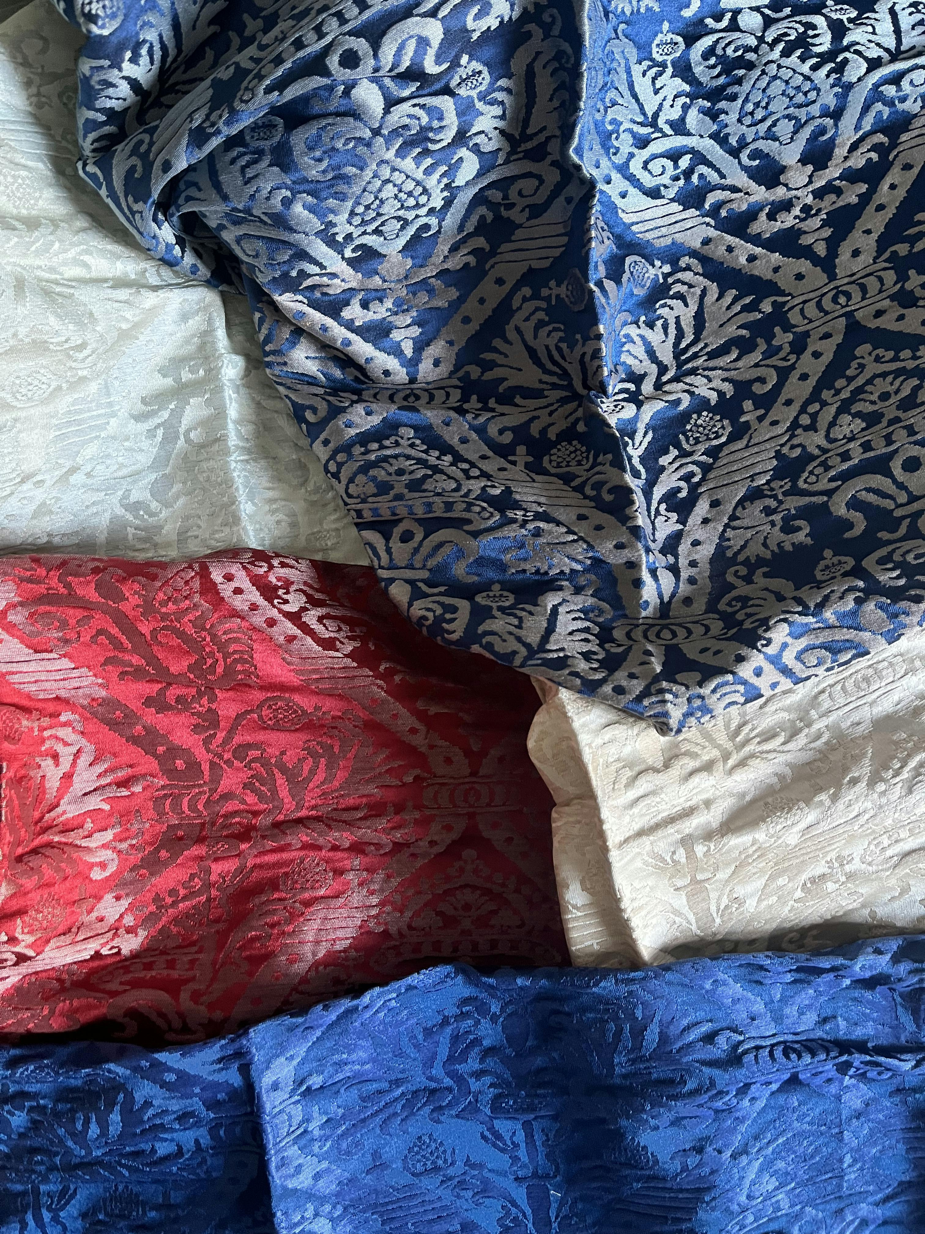Due to the absence of gold and silver brocading in the fabric, which leaves the figured ground – with its variegated effects in contrasting colours – fully visible, this lampas was very popular both matched with the more precious brocaded version and as a standalone, above all for furnishings.