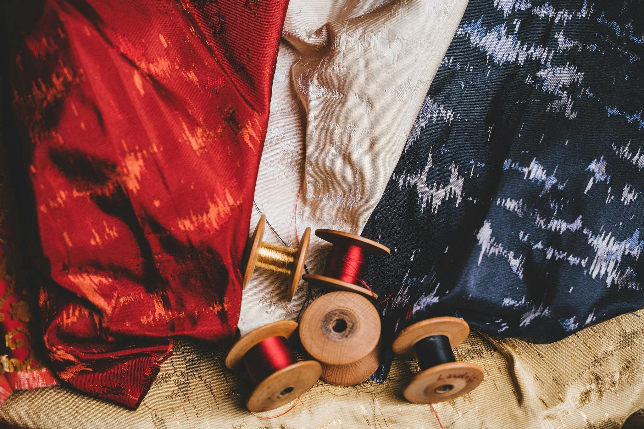 ‘Farfalle’ is one in a series of fabrics made especially precious by use of extremely fine silk threads and by the sheer richness of the weaves, which in a multitude of colours describe patterns not infrequently illuminated by gold.
