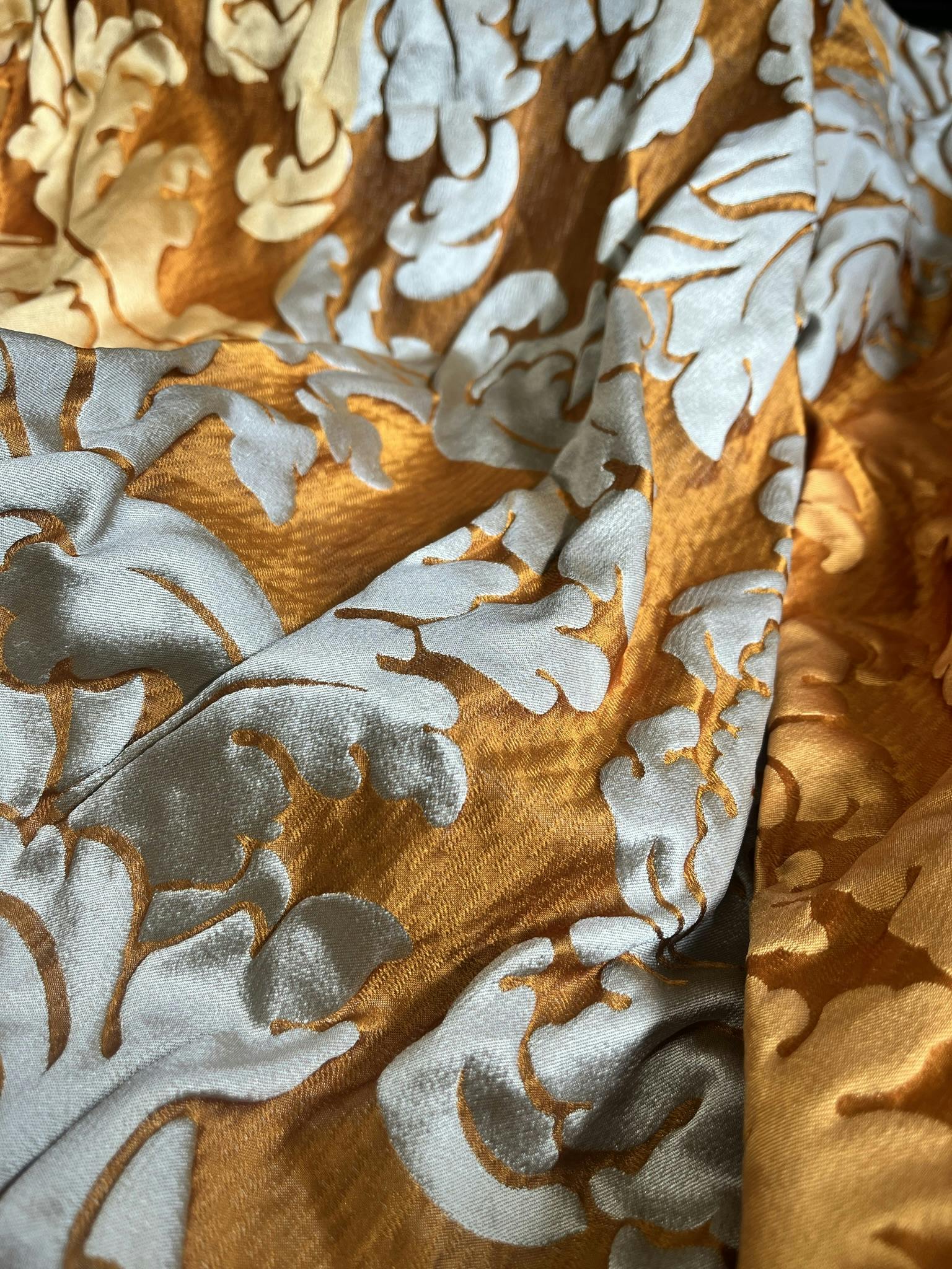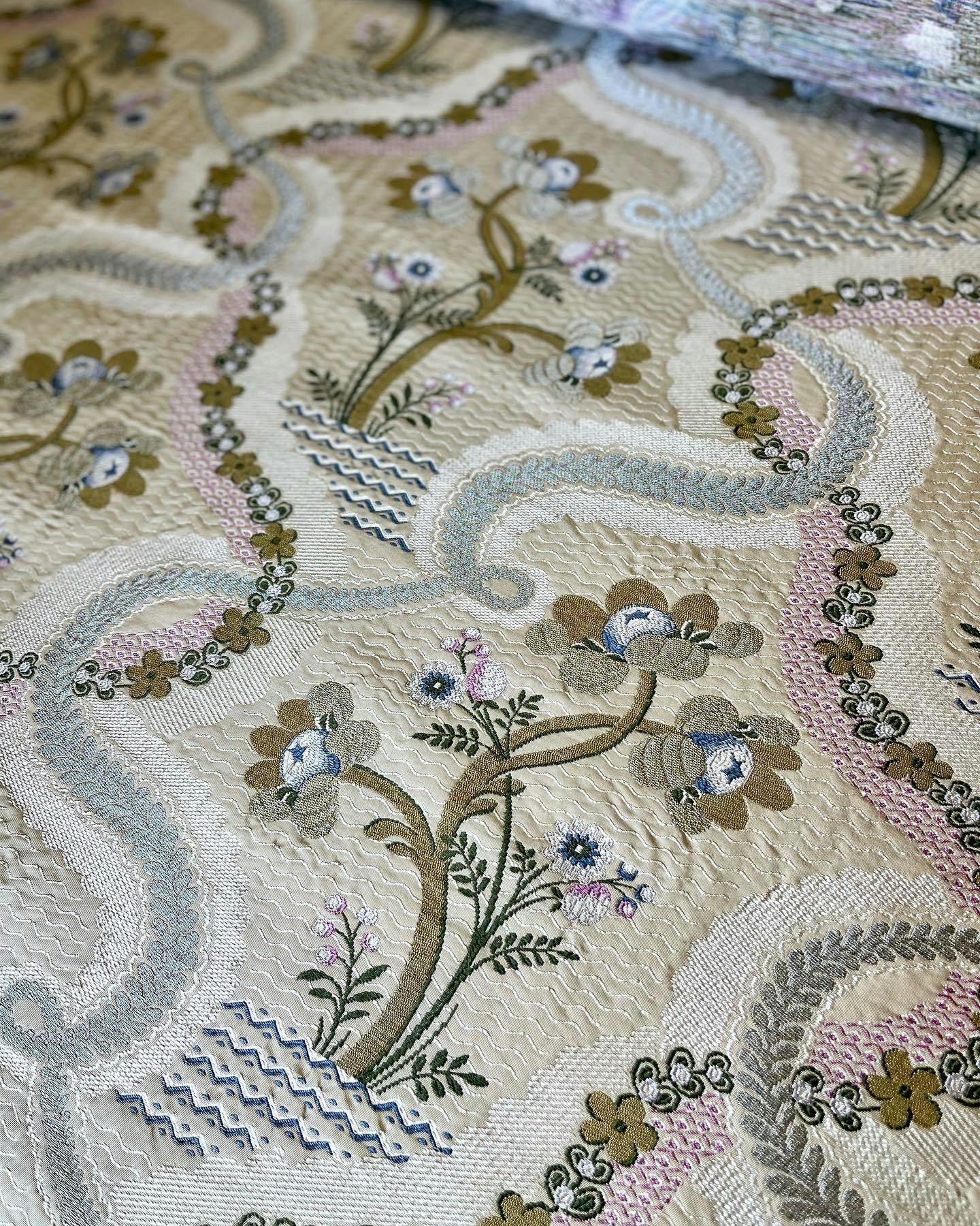 The ‘Duomo’ design presents an elegant motif from the mid-18th century taken from a church parament conserved at the Florence cathedral. Giuseppe Lisio, who set this design up on the loom for the first time in about 1920, possessed such a piece in his collection of ancient exemplars from which he drew many of his designs. As in the original, the fabric is especially rich, due to inclusion of numerous precious threads in gold and silver.