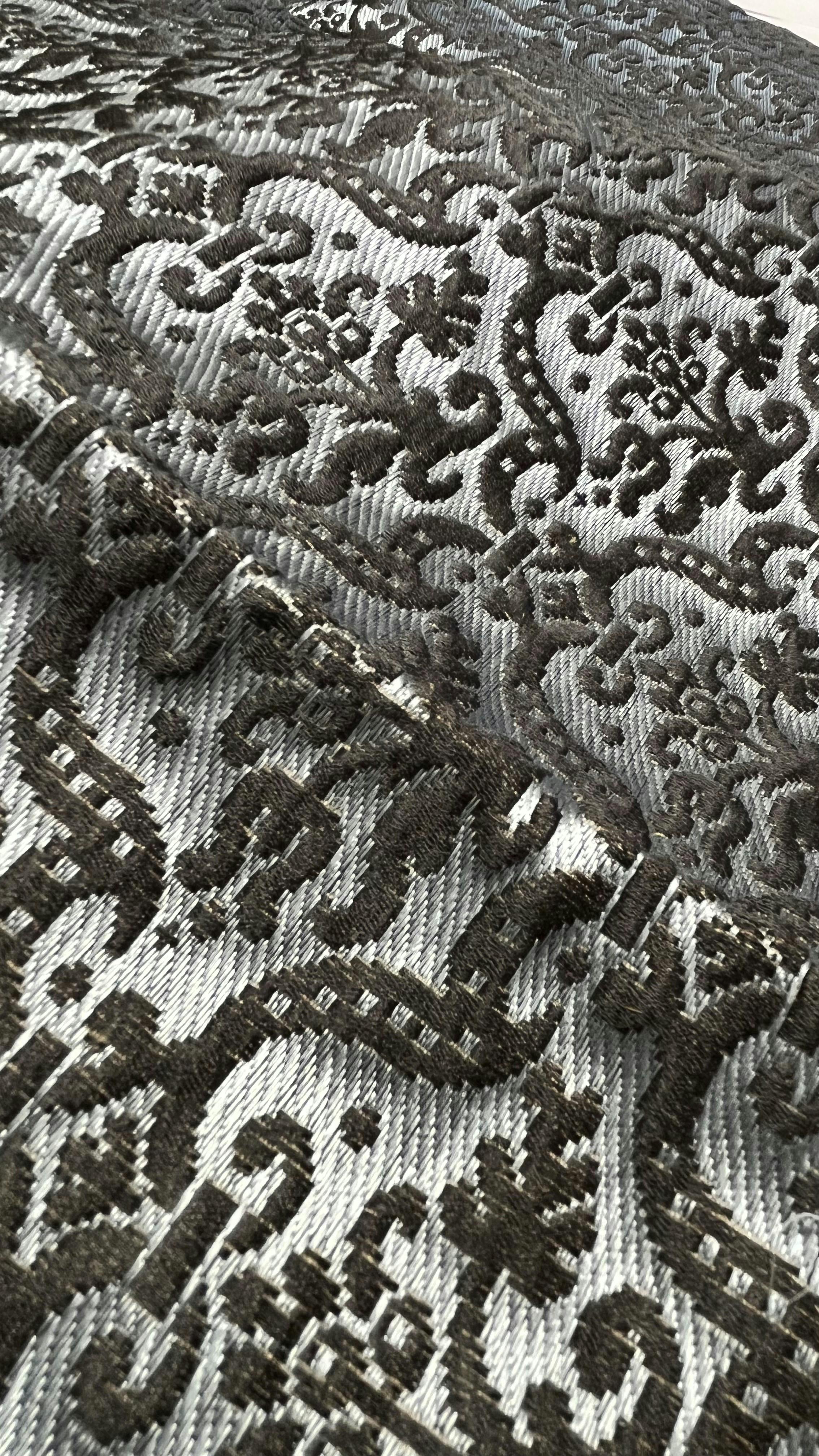 Questo sontuoso pattern presenta un gusto barocco che si sviluppa però su un impianto disegnativo ancora rinascimentale. Giuseppe Lisio iniziò a produrlo intorno al 1926 e oggi come allora, il suo migliore utilizzo è nell’ambito dell’arredamento come rivestimento di mobili in stile.
