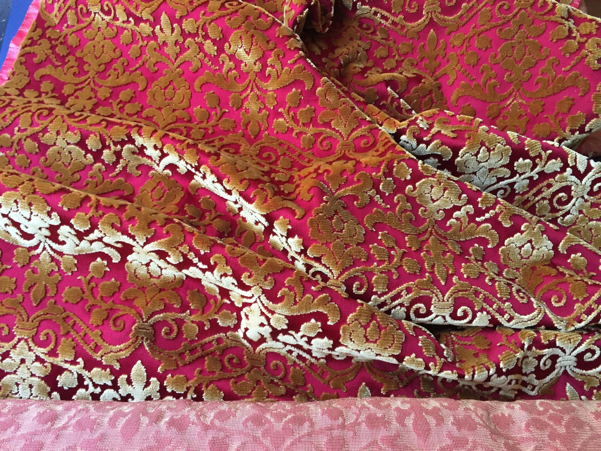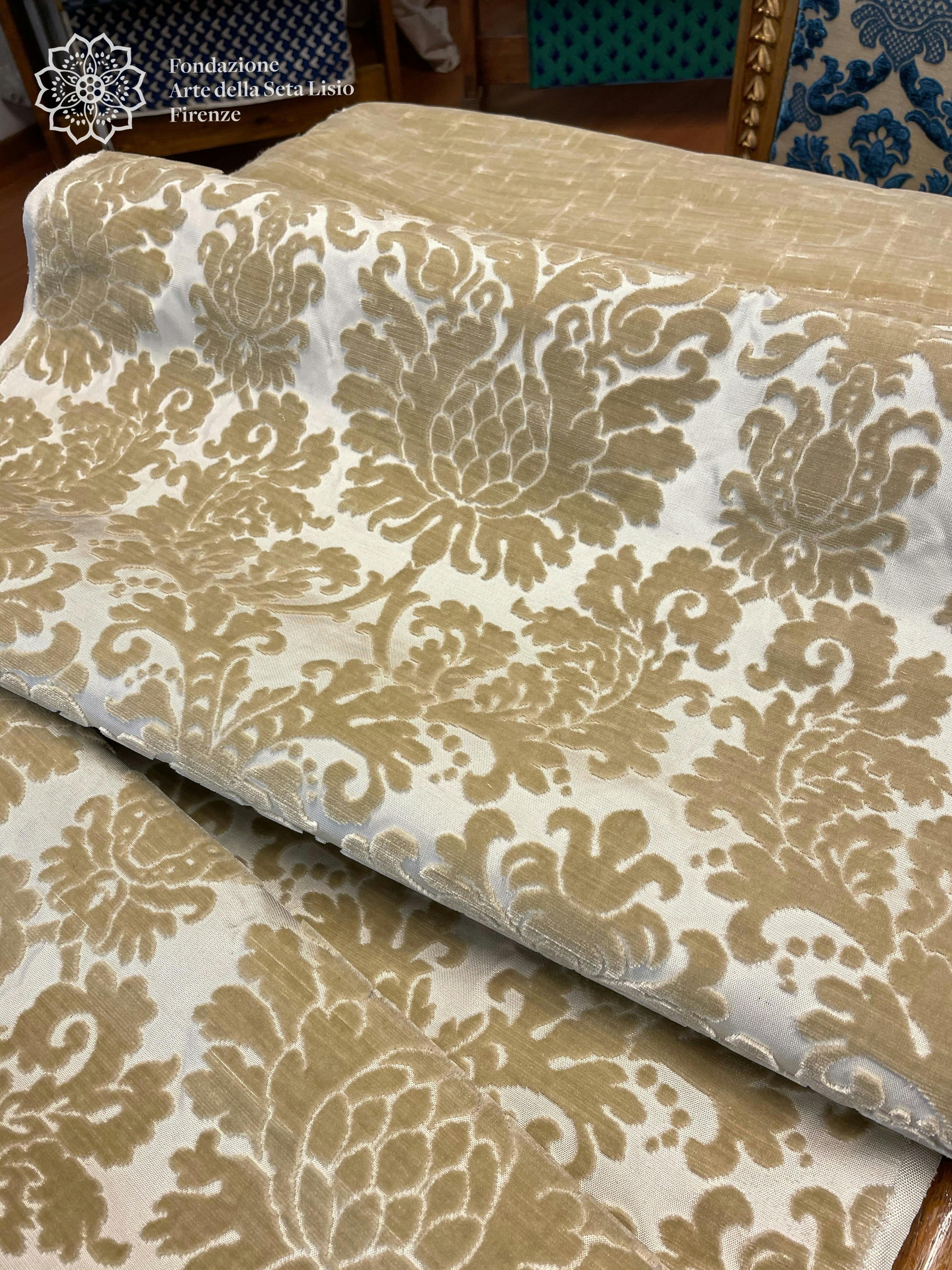 The pattern of this velvet, created in two variants, faithfully reproduces that of a typical 16th-century velvet manufactured in Florence for an entire century, beginning in the mid-1500s. Many ecclesiastical textiles with the motif are conserved to this day in and around Florence.