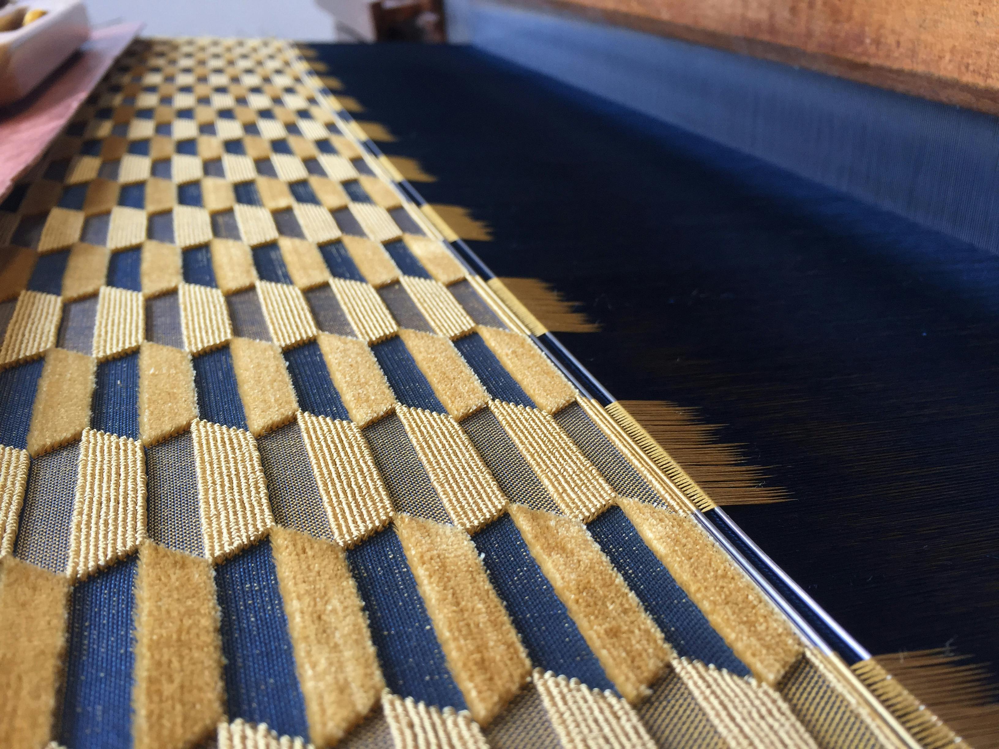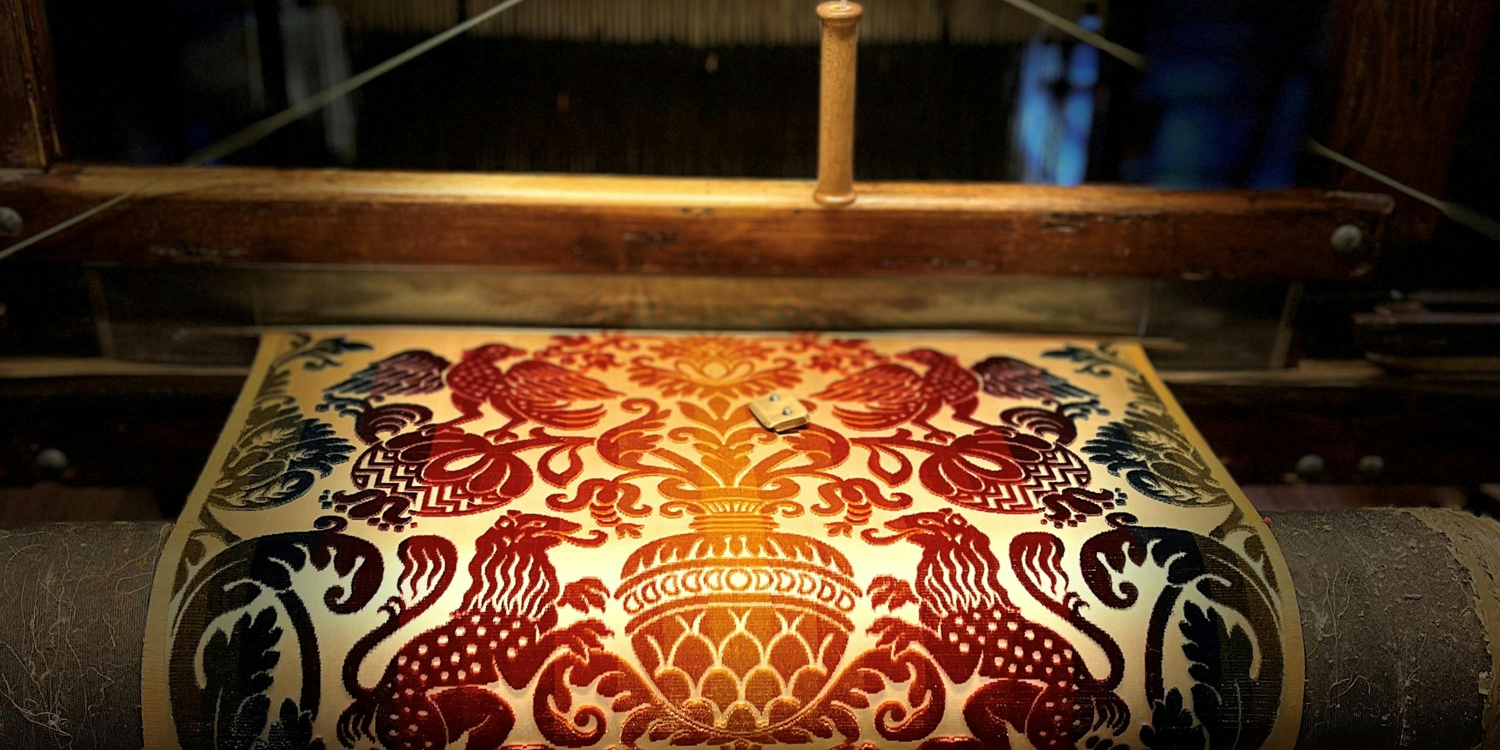 The design of this velvet, woven in two variants, faithfully reproduces a typical 16th-century velvet produced in Florence for an entire century, beginning in the mid-1500s. The ‘Palio I’ velvet was set up on the loom by Giuseppe Lisio for the first time in 1925.