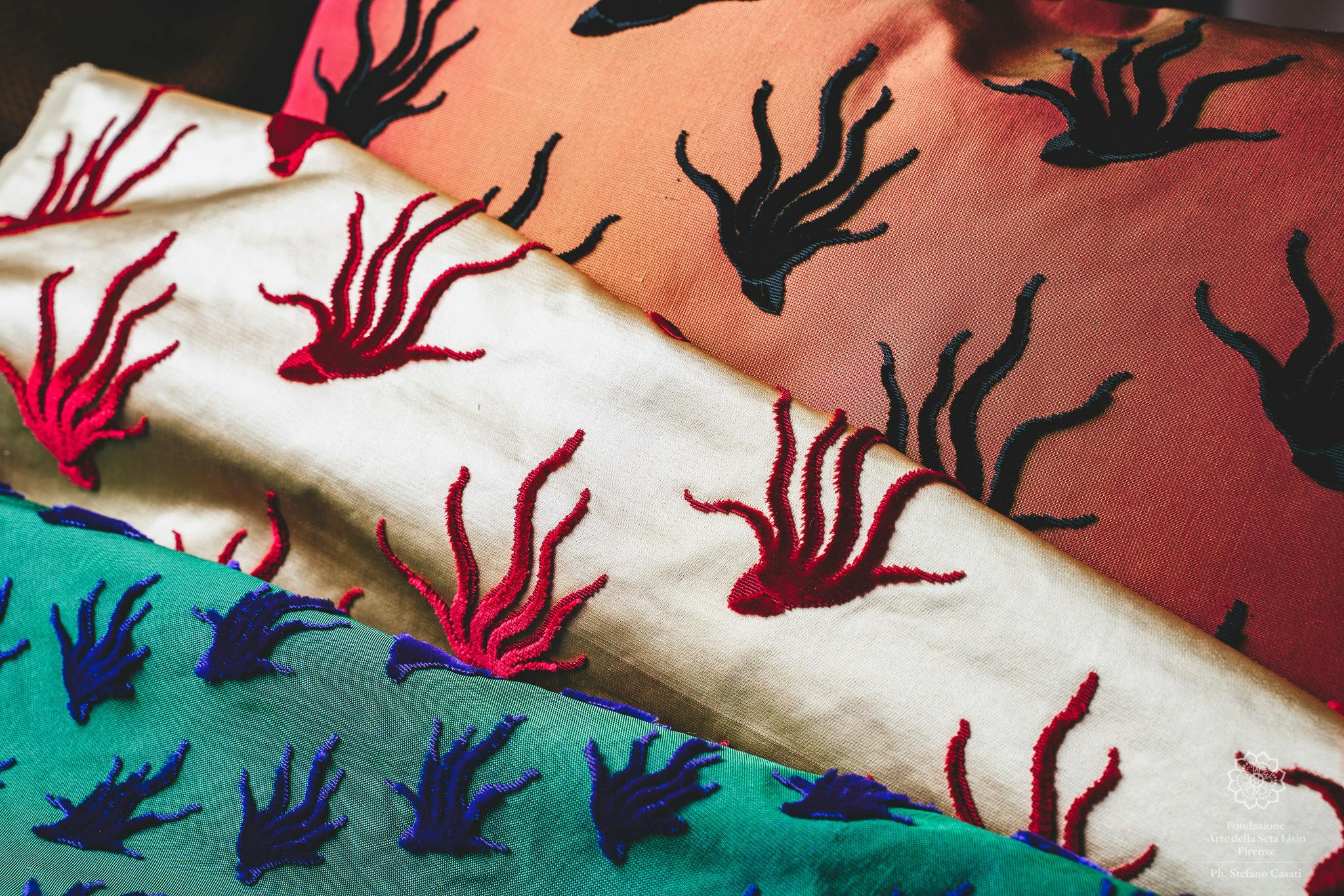 The Lisio Foundation Manufacture continues to draw from the historical archive, proposing new color and structure experiments, creating each time absolutely unique and contemporary fabrics.