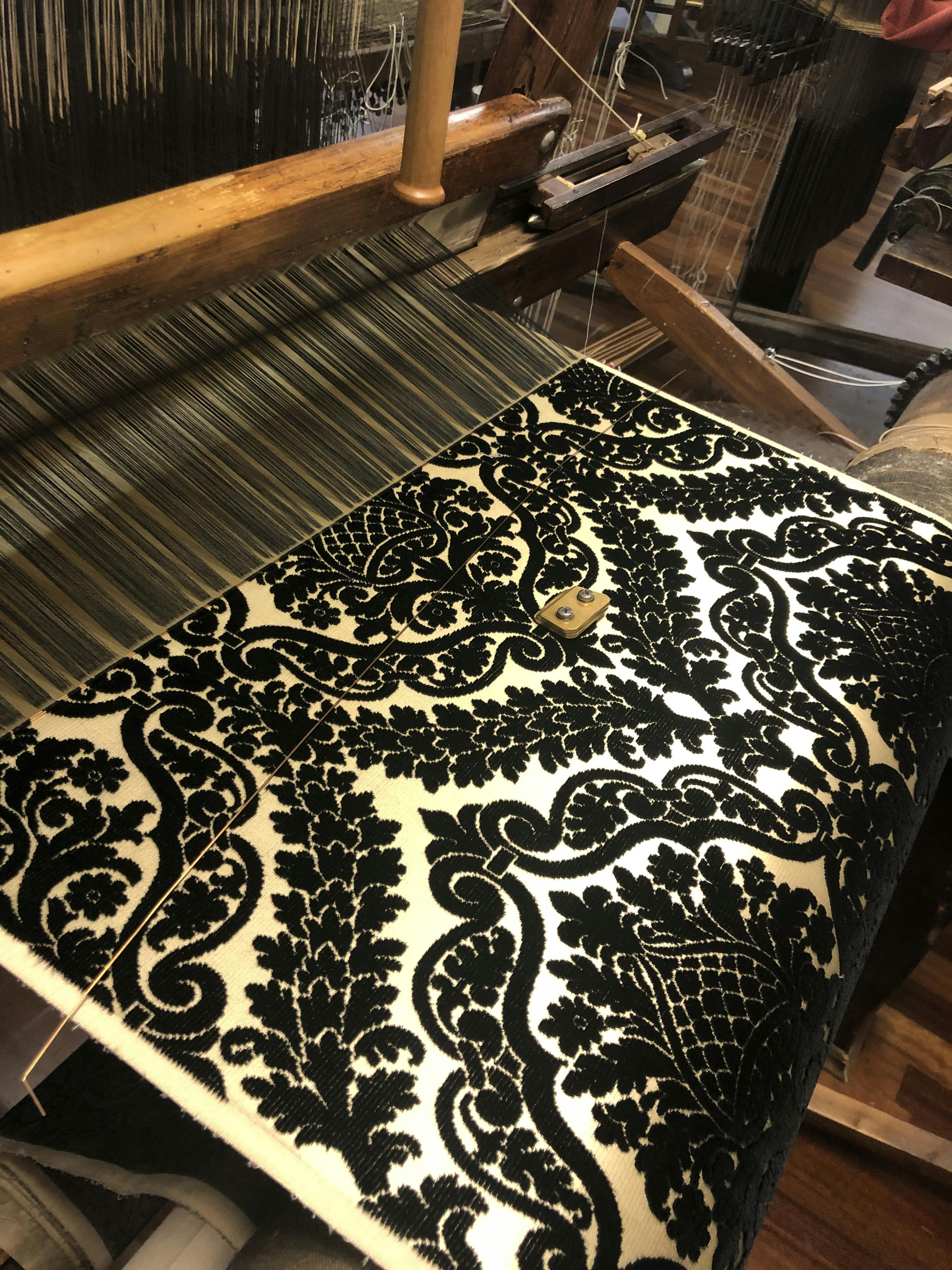 - Woven on a late 19th-century hand-operated Jacquard loom