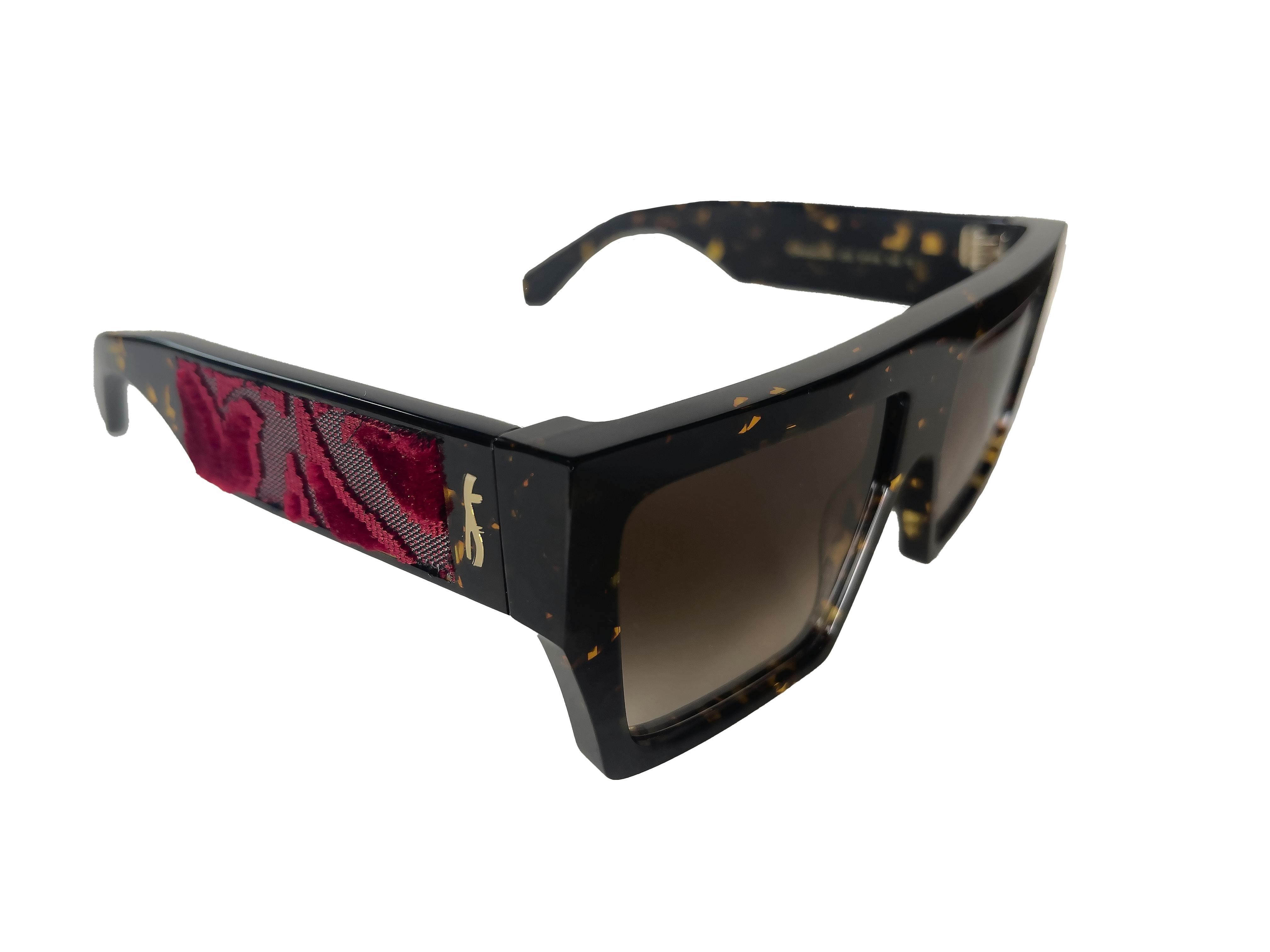 Il velluto, precedentemente trattato in Atelier sul rovescio, viene tagliato manualmente fino al bordo senza cuciture e solo successivamente inserito nell'acetato utilizzando materiali adesivi permanentemente che non perdono mai presa, anche se esposto a condizioni di umidità o caldo o freddo estremi. L'eccezionale lavorazione artigianale del velluto e del broccato intrecciati a mano permette al tessuto di durare per sempre, proprio come avveniva con gli abiti nobiliari che ancora possiamo osservare nei musei storici.