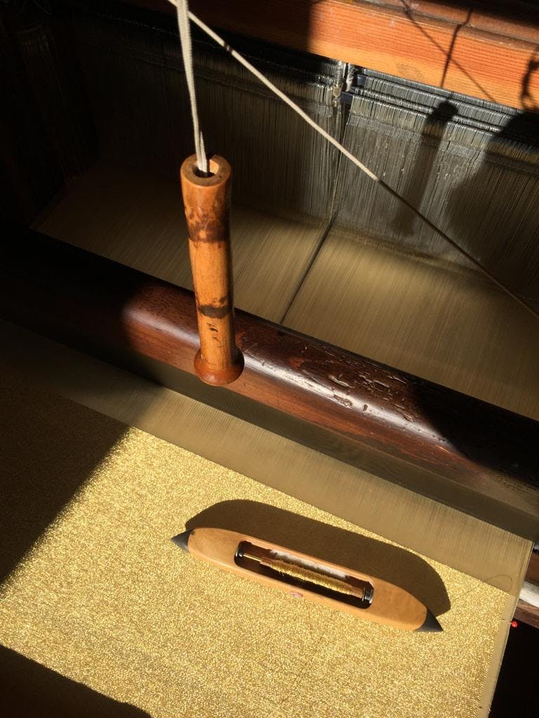 A tale scopo sono stati approntati 3 telai manuali, uno per le due telette e due telai per il velluto.